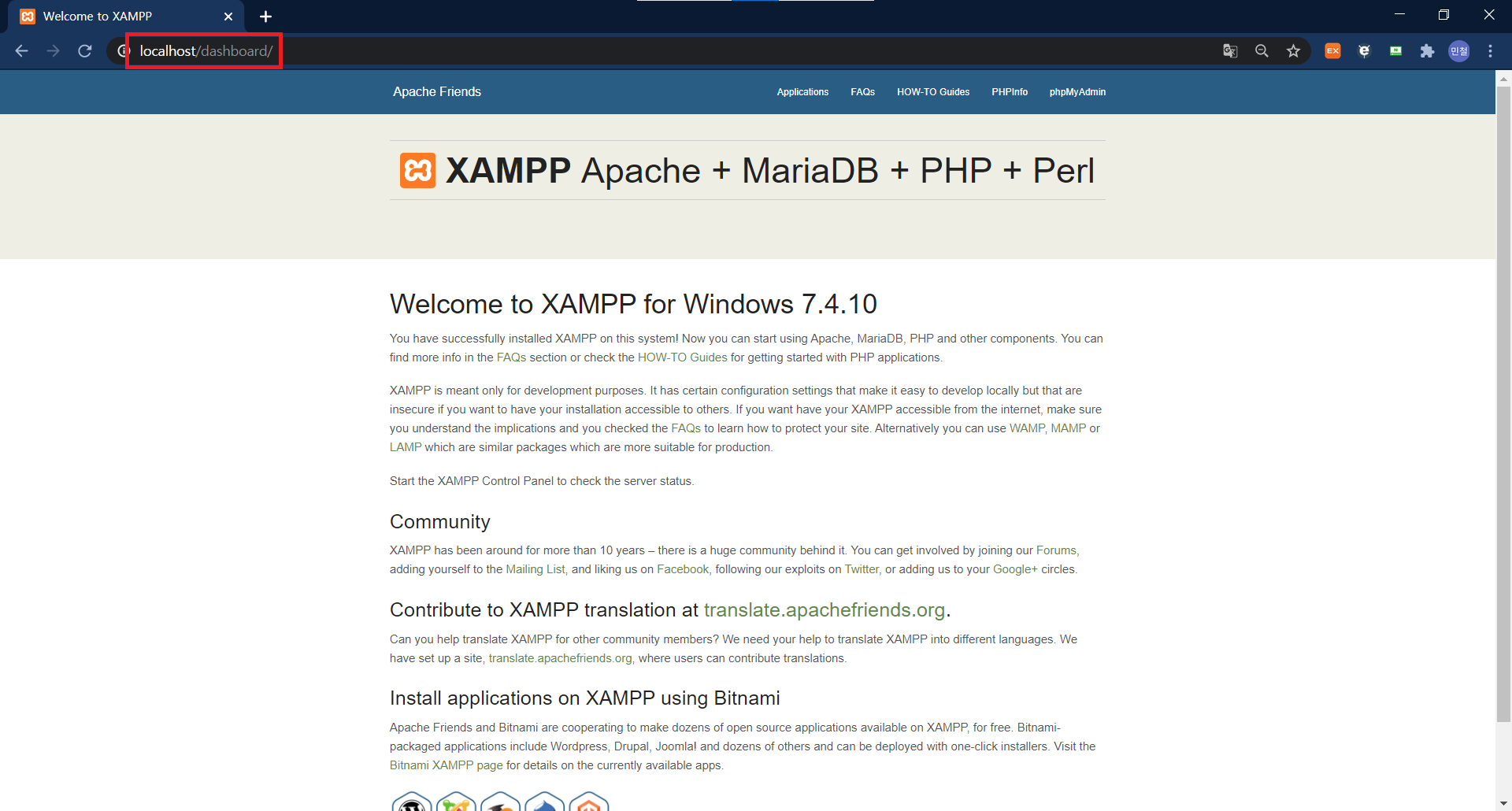 사이트 : https://www.apachefriends.org/index.html