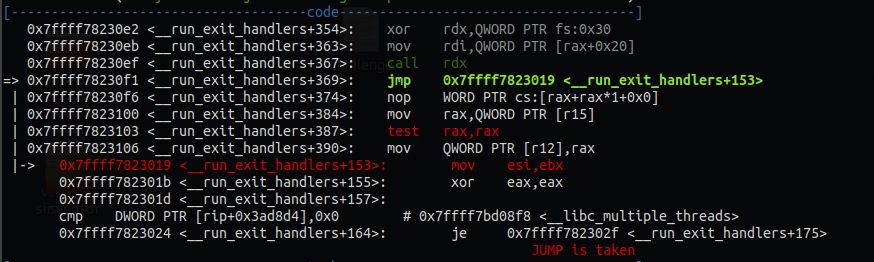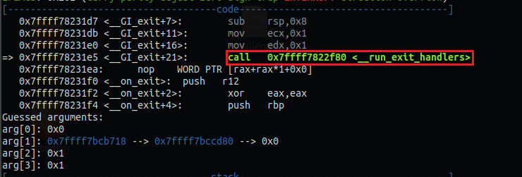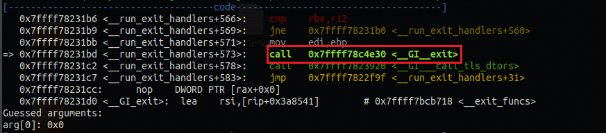 _dl_fini()가 리턴되고 다시 __run_exit_handlers()루틴으로 돌아오면