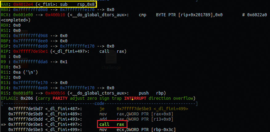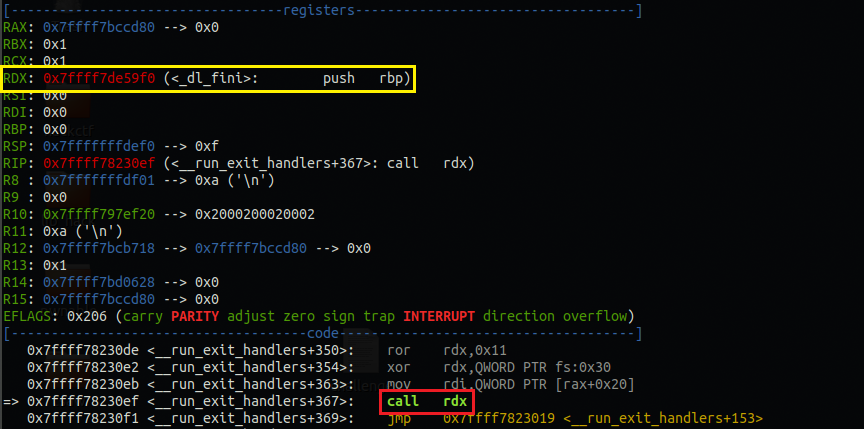 __run_exit_handlers()루틴 내부에서는 rdx에 저장된 _dl_fini()를 호출하게 된다.