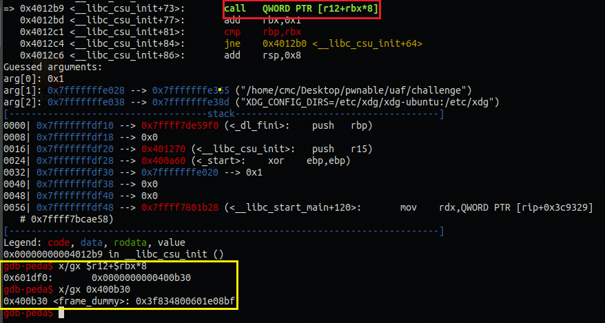 __libc_csu_init()가 수행하는 주요 작업은 _init()를 호출하는 일이다. 추가적으로 __preinit_array 와 __init_array에 설정된 함수 포인터를 읽어서 함수를 호출하는 것을 확인할 수 있다. 그리고 _init()는 call_gmon_start()를 호출하고 call_gmon_start()는 _gmon_start_()가 존재할 경우 이거를 호출한다고만 알고 넘어가자