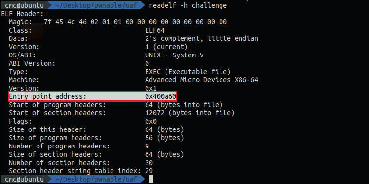 - $elfheader명령을 통해 각 섹션들의 주소를 확인할 수 있다.