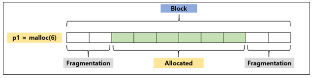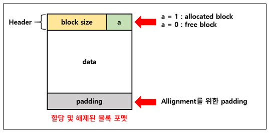 2-2) Allocate Block : 선택된 free block이 요청한 크기보다 클 수 있으므로 잘라서 할당