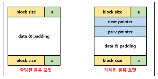 포인터를 사용하여 모든 블록 대신 해제된 블록만 연결(Double Linked List를 이용하여 구현)