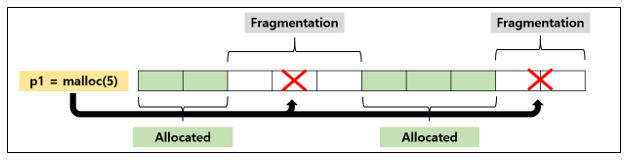 반복된 할당 / 해제 패턴으로 인해 블록 사이에 빈 공간이 생긴 경우