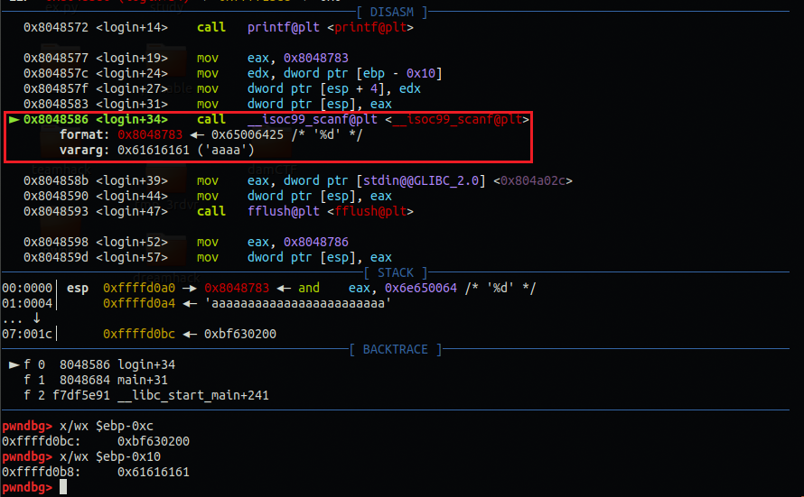 참고로 login()의 두 번째 scanf에서도 passcode2변수 앞에 "&"을 지정하지 않았으니 어떻게 name값 주작해서 첫 번째 scanf를 통과해도 두 번째 scanf를 호출하지 않고 통과해야 한다.