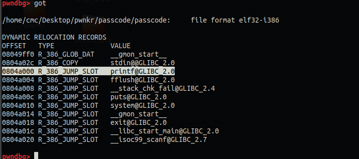 보니깐 passcode1에 puts()의 코드영역 주소 값이 들어있다
