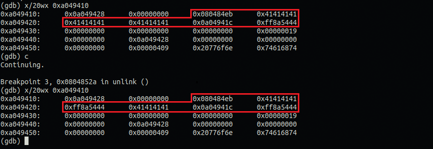 그럼 unlink의 첫 번째 문장을 실행시킬 때 문제는 없는지 확인해보자