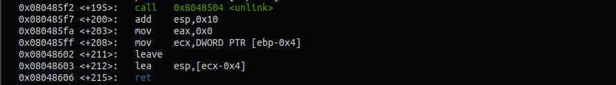 lea esp, [ecx-0x4] // esp에 ecx-0x4의 주소를 넣는다.